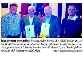 Nietmann und Happe geehrt - Touristikgemeinschaft dankt Ehrenamtlichen